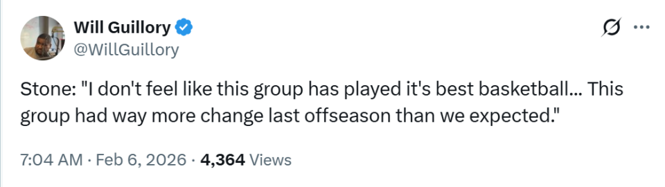 斯通直言自己喜欢目前这支火箭队的配置,同时认为这支队伍还远没有展现出最佳状态,即便如此,球队在存在明显短板的情况下,还是将攻防效率保持在联盟前五。