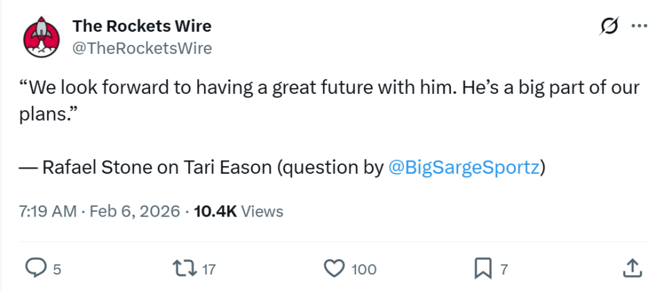 随后TA记者William Guillory也在专栏文章中给出斯通看好现有阵容的原因,并且明确表示火箭队之所以0操作,不愿意交易伊森、谢泼德和小贾三人是重要原因。