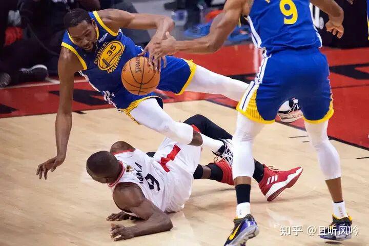 冠军会让球队懈怠,长时间的高强度比赛会让球员疲惫。勇士的防守始终无法专注起来,这种情况持续了一整个赛季,即使到了季后赛,你会发现,勇士的防守依然没能完全捡回来,季后赛防守效率111.4,只能排在所有球队的第11位,而去年勇士是联盟季后赛防守最好的球队。勇士的防守延续性完全没有了,只有摆出特定阵容才能拿出足够的防守强度,又因为季后赛后半程没有杜兰特,防守较差的轮换球员库克、麦金尼、杰雷布科要得到更多的出场时间,勇士的整体防守进一步被削弱。本来与猛龙的系列赛期待勇士在没有杜兰特的情况下可以打出防守局,实际情况是,勇士百回合要丢114.9分,防守端做的比进攻还要差。